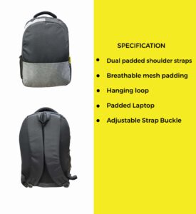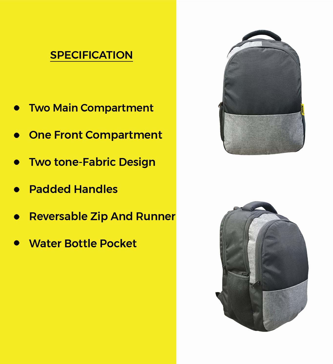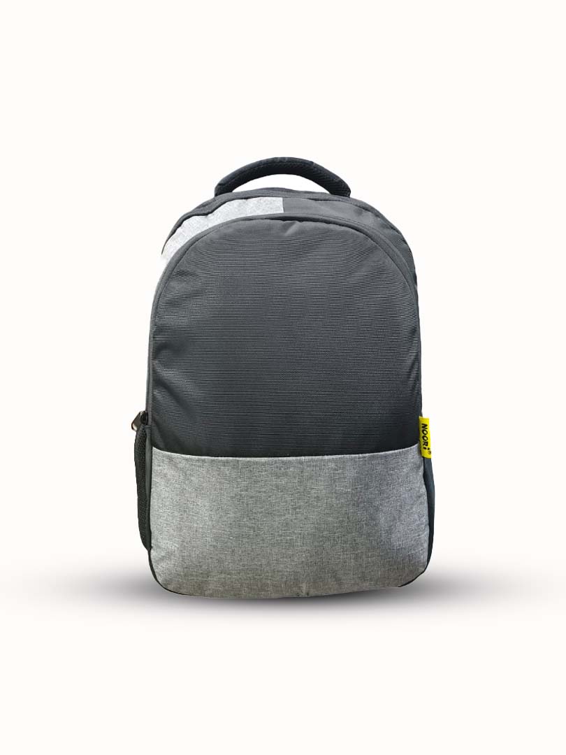 Side pockets provide quick access to bottles and small accessories, and the premium grey fabric at the bottom gives extra durability against daily wear. Finished with the signature Noori yellow tag, this backpack is built for those who want a neat, functional, and affordable everyday carry option.