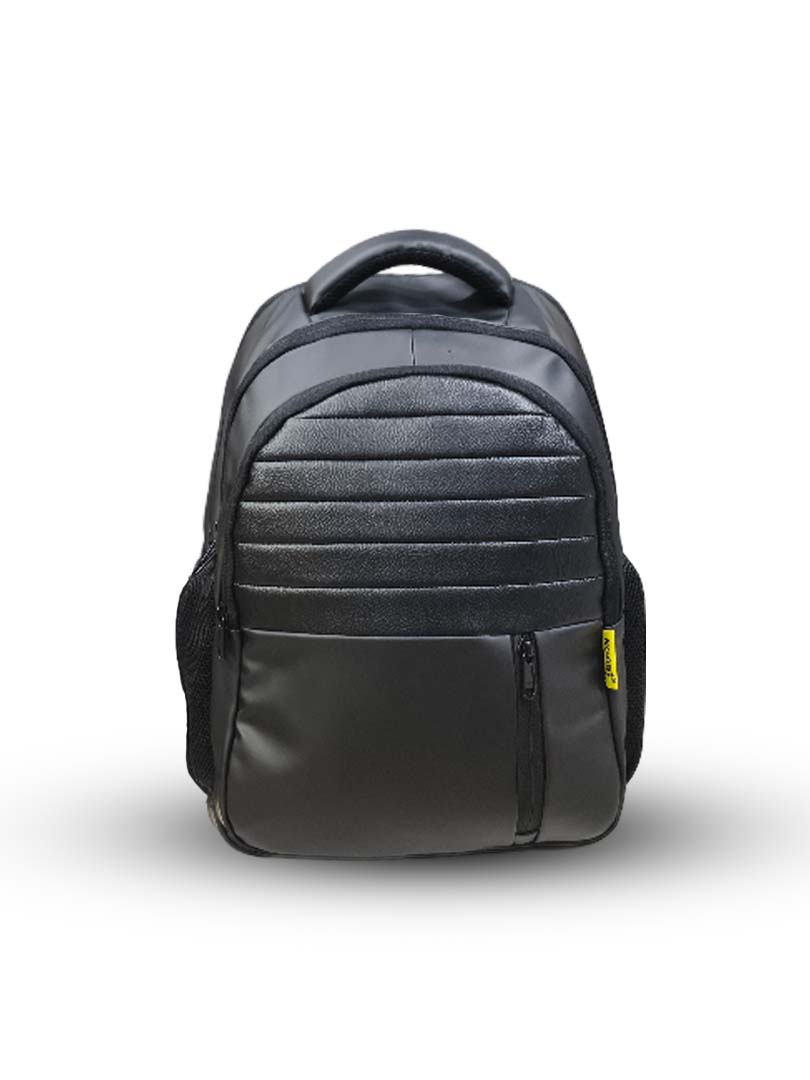 This premium black backpack is designed for users who prefer a clean, classy, and modern look. The elegant ribbed upper panel gives the bag a stylish structure, while the smooth leather-finish bottom section adds a refined touch. Built for daily convenience, the bag includes a spacious main compartment for essentials like books, files, or travel items, along with a practical front zipper pocket for quick access.